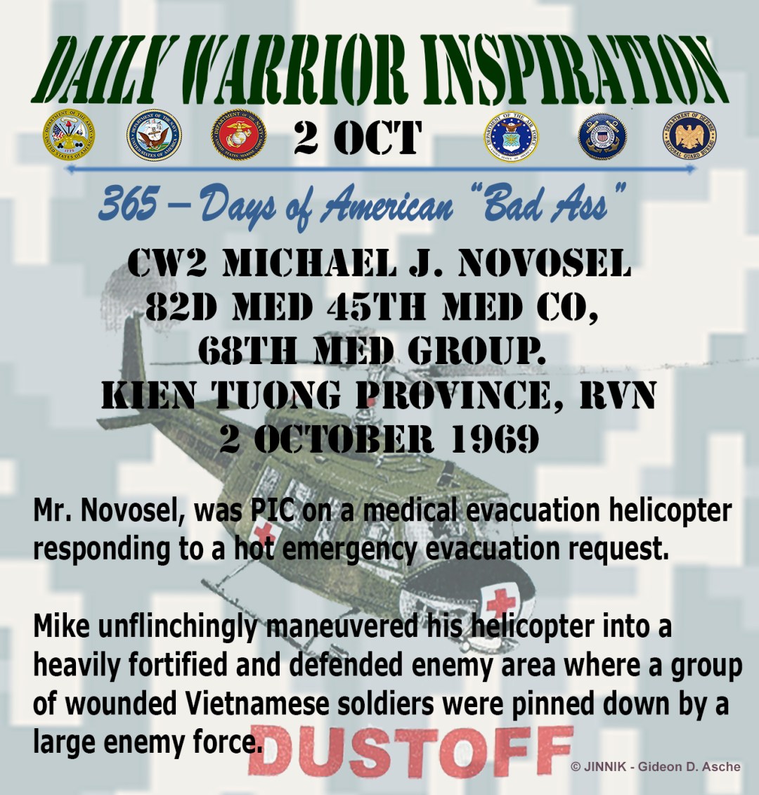 Mr. Novosel and his brave crew conducted a total of 15 extremely hazardous extractions under heavy enemy fire and the lives of 29 soldiers were saved.