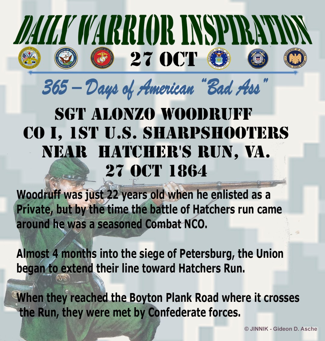 Woodruff was just 22 years old when he enlisted as a Private, but by the time the battle of Hatcher’s run came around, he was a seasoned Combat NCO.