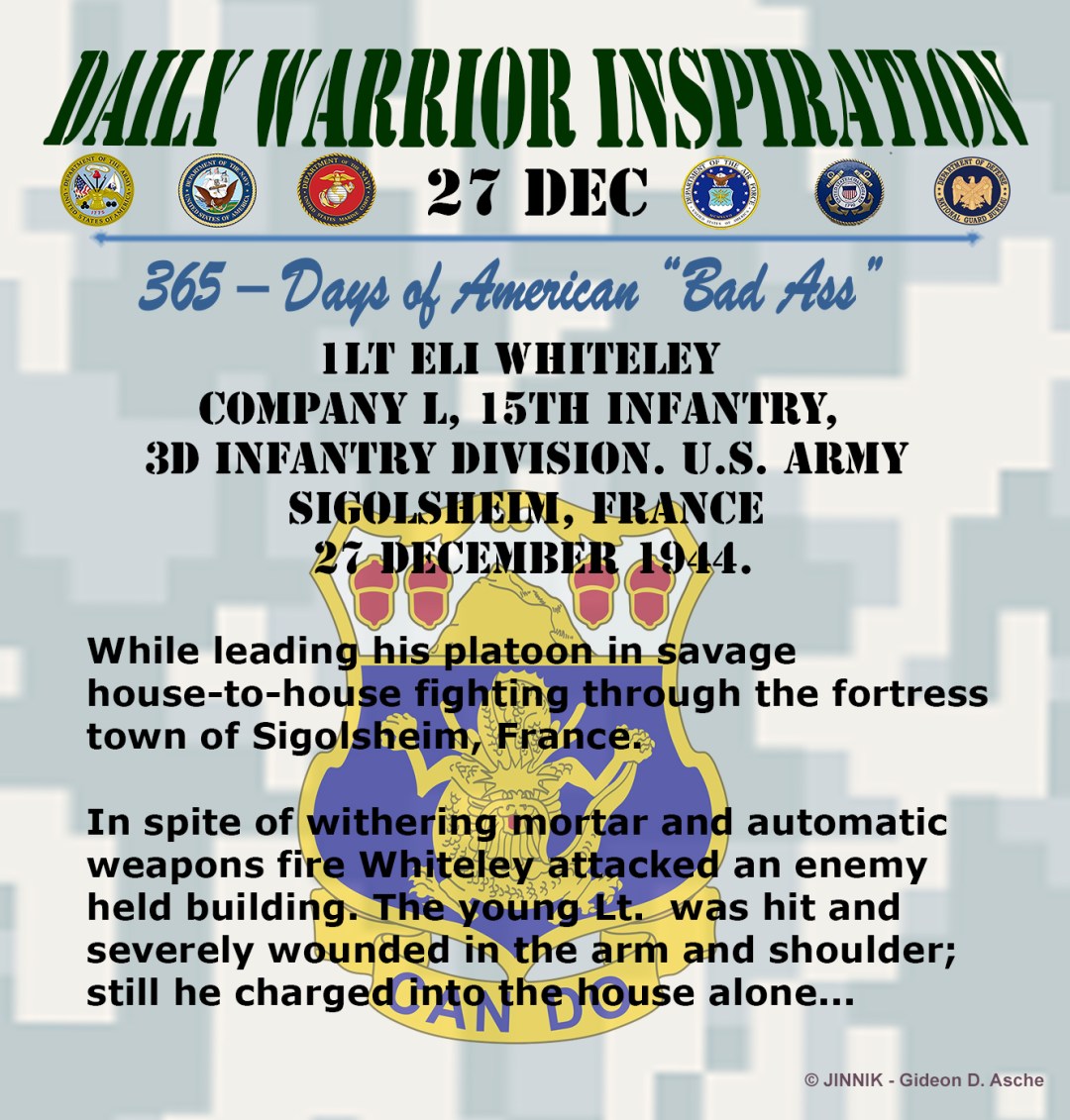 1st Lt. Whiteley killed 9 Germans, captured 23 more and spearheaded an attack that cracked the core of enemy resistance in a vital area.