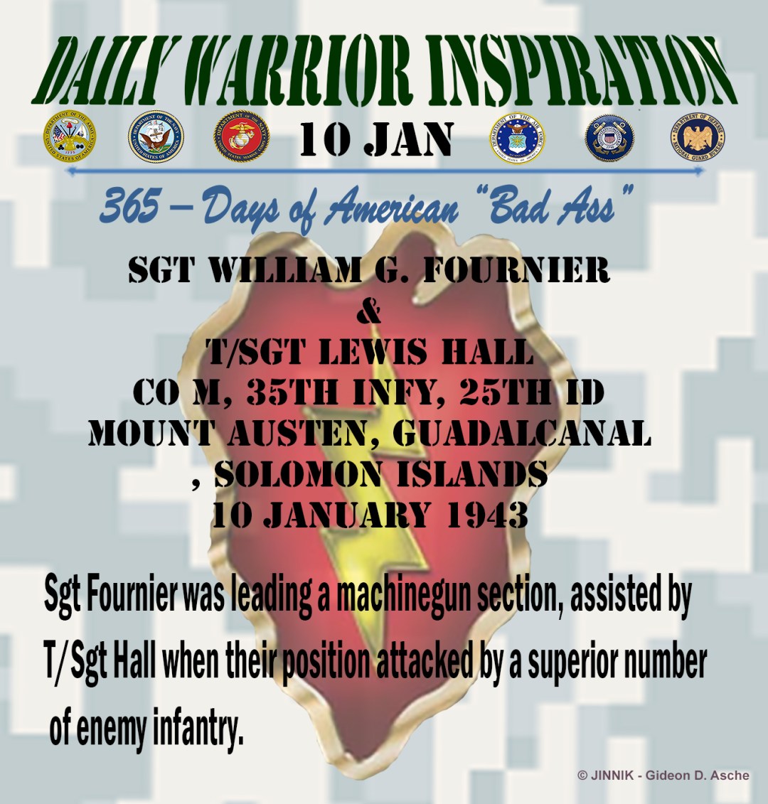 Sgt Fournier was leading a machinegun section, assisted by T/Sgt Hall when their position attacked by a superior number of enemy infantry.