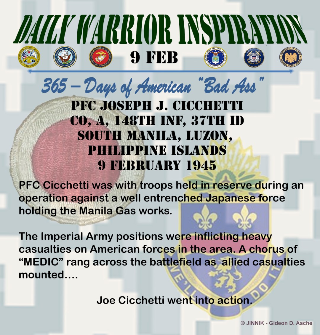 A chorus of “MEDIC” rang across the battlefield as allied casualties mounted…. Pfc. Cicchetti went into action.