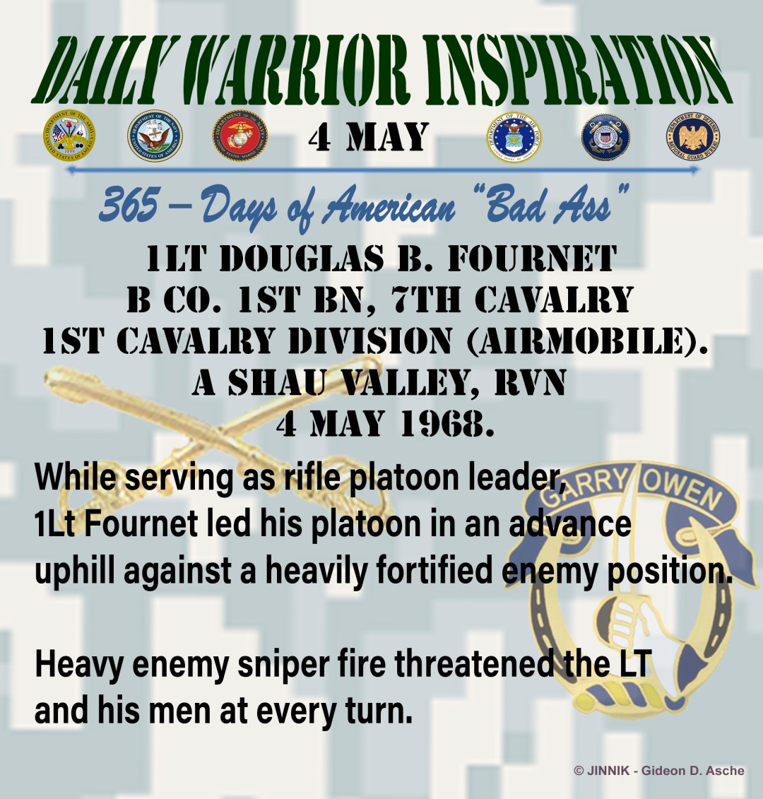 The enemy detonated the Claymore, killing Fournet instantly. Five of his men were slightly wounded, but 1Lt. Fournet’s unselfish act saved his men serious injury or death.