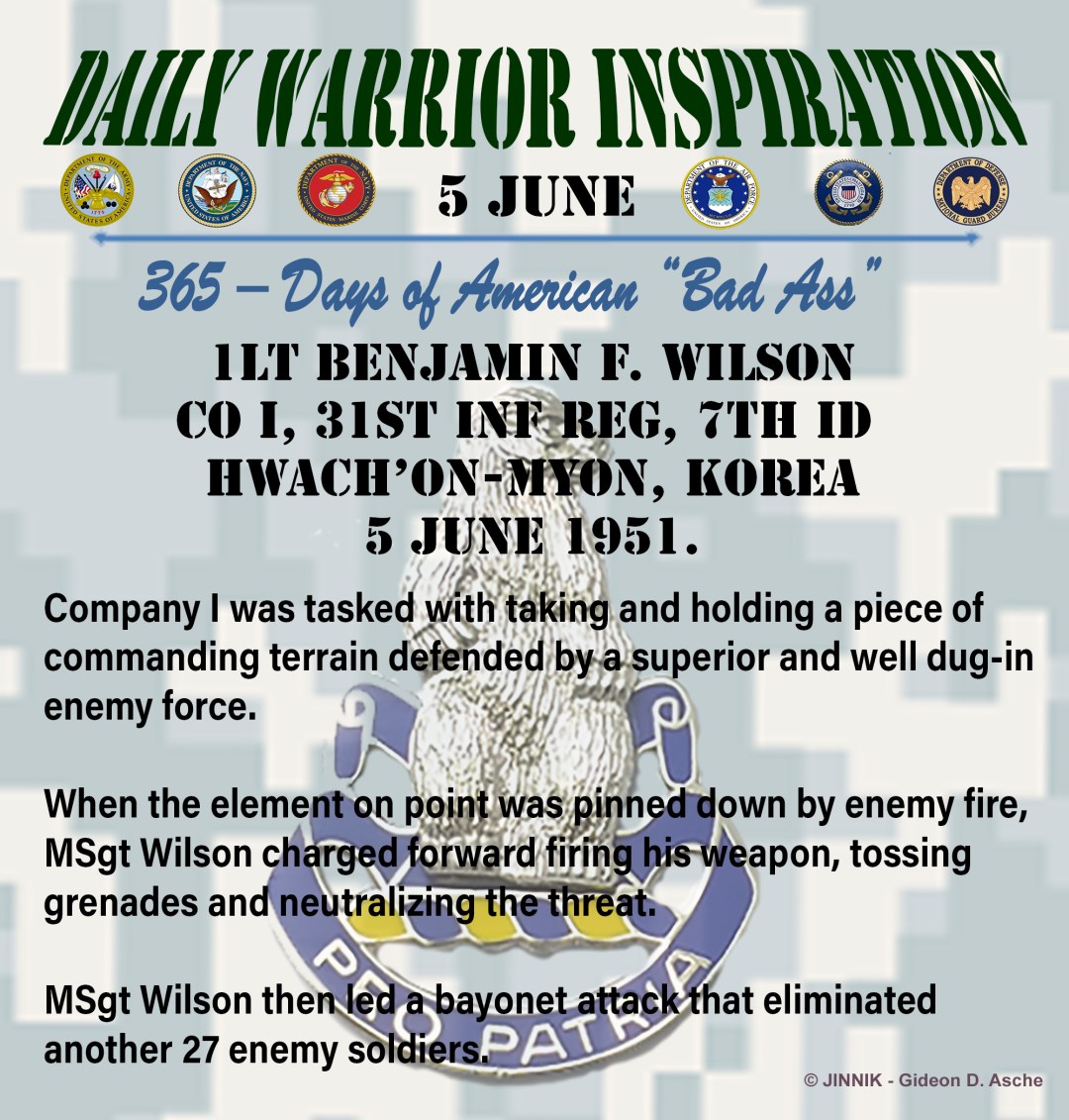 First Lieutenant (then M/Sgt.), Wilson and his company were tasked with taking and holding a piece of commanding terrain defended by a superior and well dug-in enemy force.