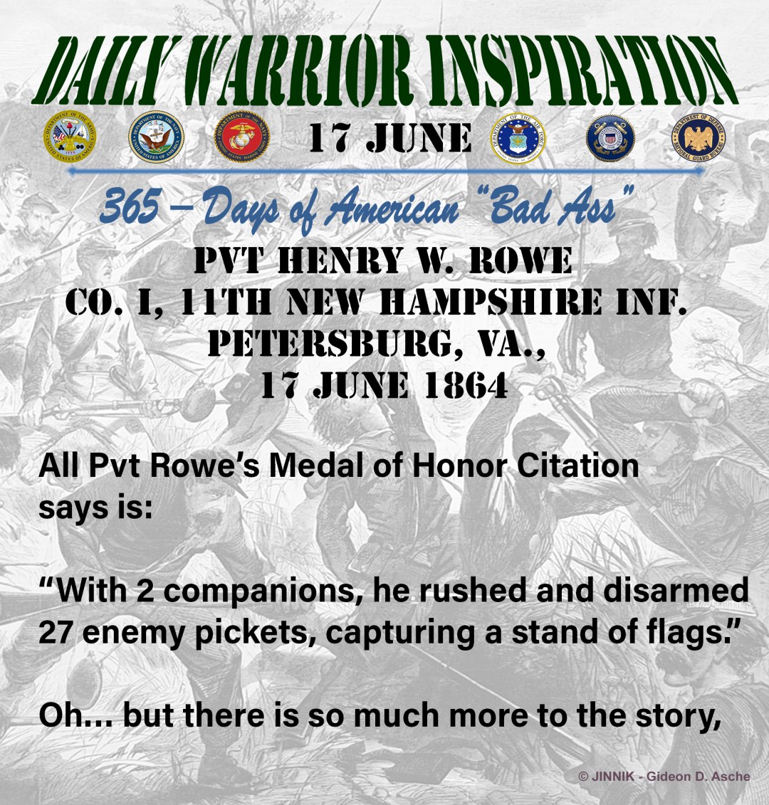 Pvt Rowe and 2 of his buddies broke through the line and surprised a platoon of Confederates. Pvt. Rowe is reported to have hollered “Surrender, you damned rebels!”