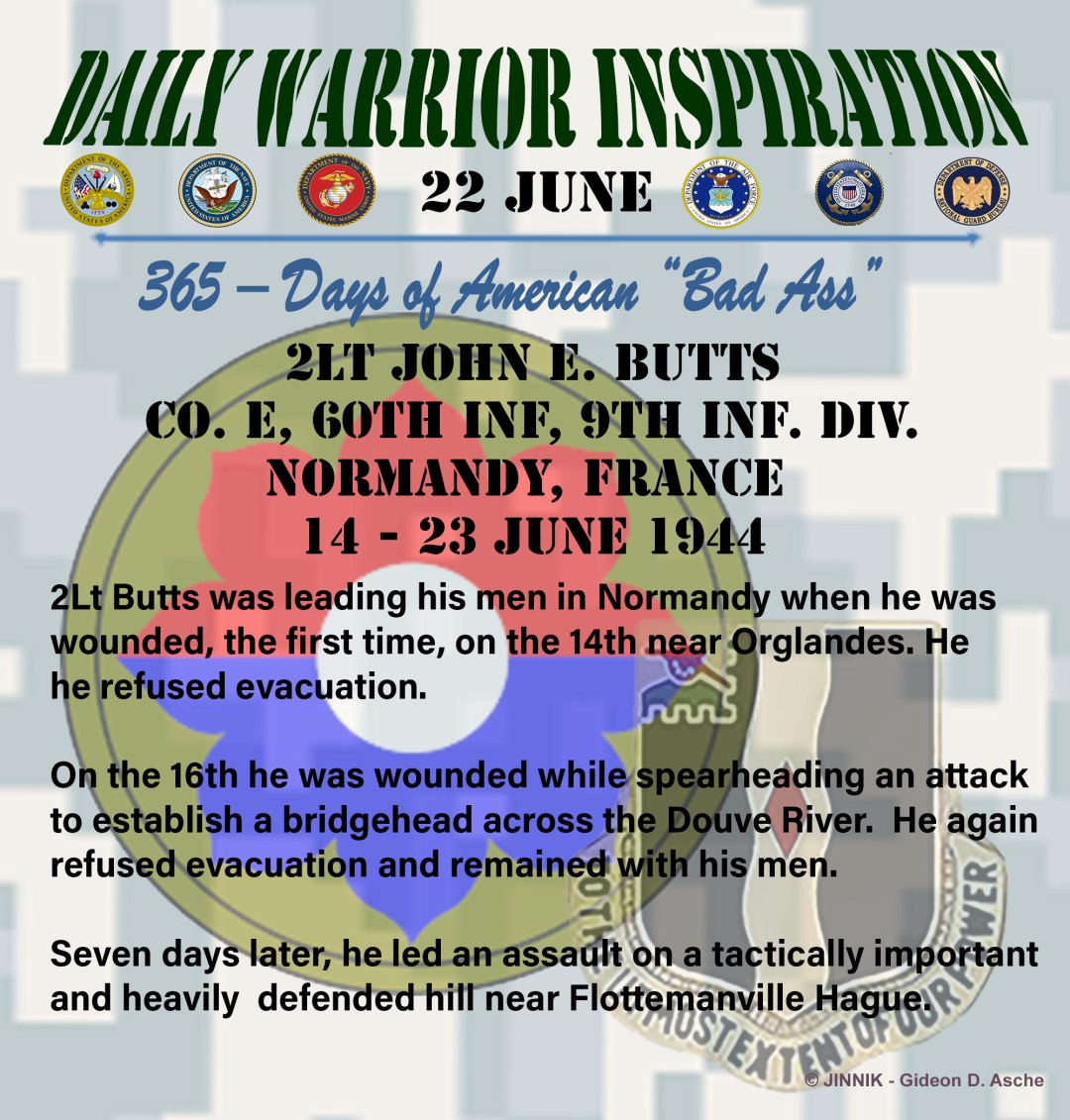 “By his superb courage, unflinching valor and inspiring actions, 2d Lt. Butts enabled his platoon to take a formidable strong point and contributed greatly to the success of his battalion’s mission.”